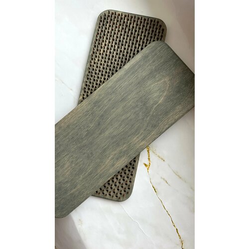 Комплект деревянных досок садху, хорошо подойдёт как для опытных, так и для начинающих. Набор досок выполнен из массива ясеня. Шаг гвоздей 10 мм. Размер доски 14х31см. Поле гвоздей 28,5х12см. подойдет до 46 размера ног. Гвозди медные. Расположение гвоздей по цветку жизни. Доски фиксируются на магниты. Массив ясеня покрыт маслом GAPPA. С помощью доски садху можно навести порядок в своем организме и сознании. Практика гвоздестояния основана на принципах рефлексотерапии. Гвозди оказывают давление на нервные окончания, находящиеся на стопах. Импульсы идут по всему телу, увеличивая кровоток, лимфоток, ускоряя метаболизм. Польза от практики на гвоздях для женщин: увеличение кровотока наладит работу тазобедренных органов, а соответственно положительно повлияет на репродуктивную систему. Поможет справиться со стрессом. Усталость и раздражительность влияет на иммунную систему организма и на взаимоотношения с окружающими. Процесс гвоздестояния способствует развитию выносливости у мужчин. Дополнительно гвоздестояние для мужчин тренирует силу воли в сложных ситуациях. Благодаря регулярной практике мужчины развивают энергетические и духовные потребности. Польза гвоздестония кроется в высвобождении адреналина, что обеспечивает легкость