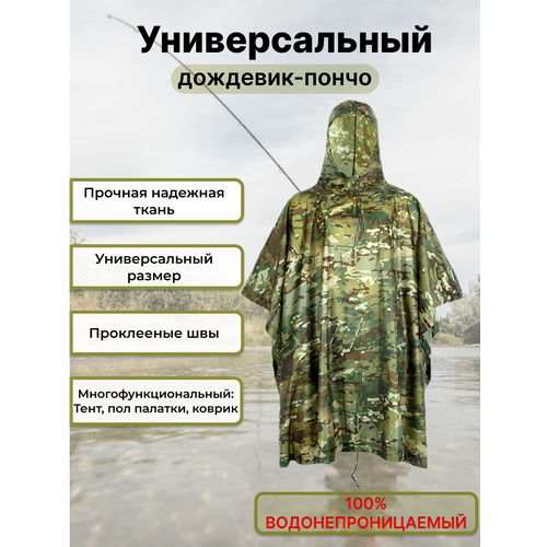 Дождевик пончо мужской женский модель унисекс в стиле пончо для защиты от дождя, ветра и грязи. Плащевая влагозащитная ткань износостойкая, подойдет на весну, лето, осень и на весь демисезон. Дождевик сшит из ткани Оксфорд-210 ПУ (полиэстер 100%) используется пропитка из полиуретанового состава, обеспечивающая материалу устойчивость к влаге и воздействию солнечных лучей. Такая пропитка существенно снижает степень намокания даже в условиях сильного дождя. Ухаживать за изделиями легко, материал прекрасно переносит как ручную, так и машинную стирку. Камуфлированная водоотталкивающая ткань Оксфорд-210 ПУ подходит для изготовления изделий направления Охота-Рыбалка-Туризм. Незаменимая вещь для всех любителей экстремального спорта и туризма - 3 в 1 водонепроницаемый взрослый длинный дождевик для женщин и мужчин . Дождевик куртка с капюшоном пончо для прогулок на открытом воздухе , путешествия , рыбалка , охота , пешие походы , кемпинг , пикник , для езды на велосипеде . Плащ 3 в 1 может использоваться в качестве навеса , напольного коврика , уличный туристический тент , коврик . Так же по углам плаща есть специальные отверстия для гвоздей , кольев или веревки , чтобы использовать аксессуар , как натяжной тент палатку или покрывало на землю . С каждой стороны есть ленты на липучке для удобной фиксации пончо в той или иной ситуации . В комплекте к дождевику идет чехол на завязке для компактного хранения и удобной переноске. Камуфляжный принт подчеркнет вашу приверженность к природному стилю и поможет сливаться с окружающей средой