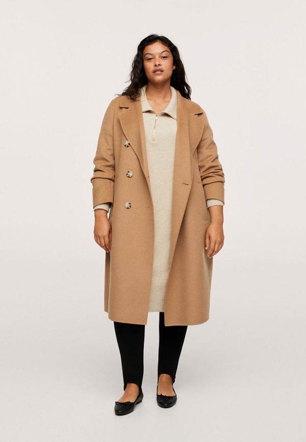 Пальто Violeta by Mango. Цвет: бежевый. Сезон: Осень-зима 2021/2022.